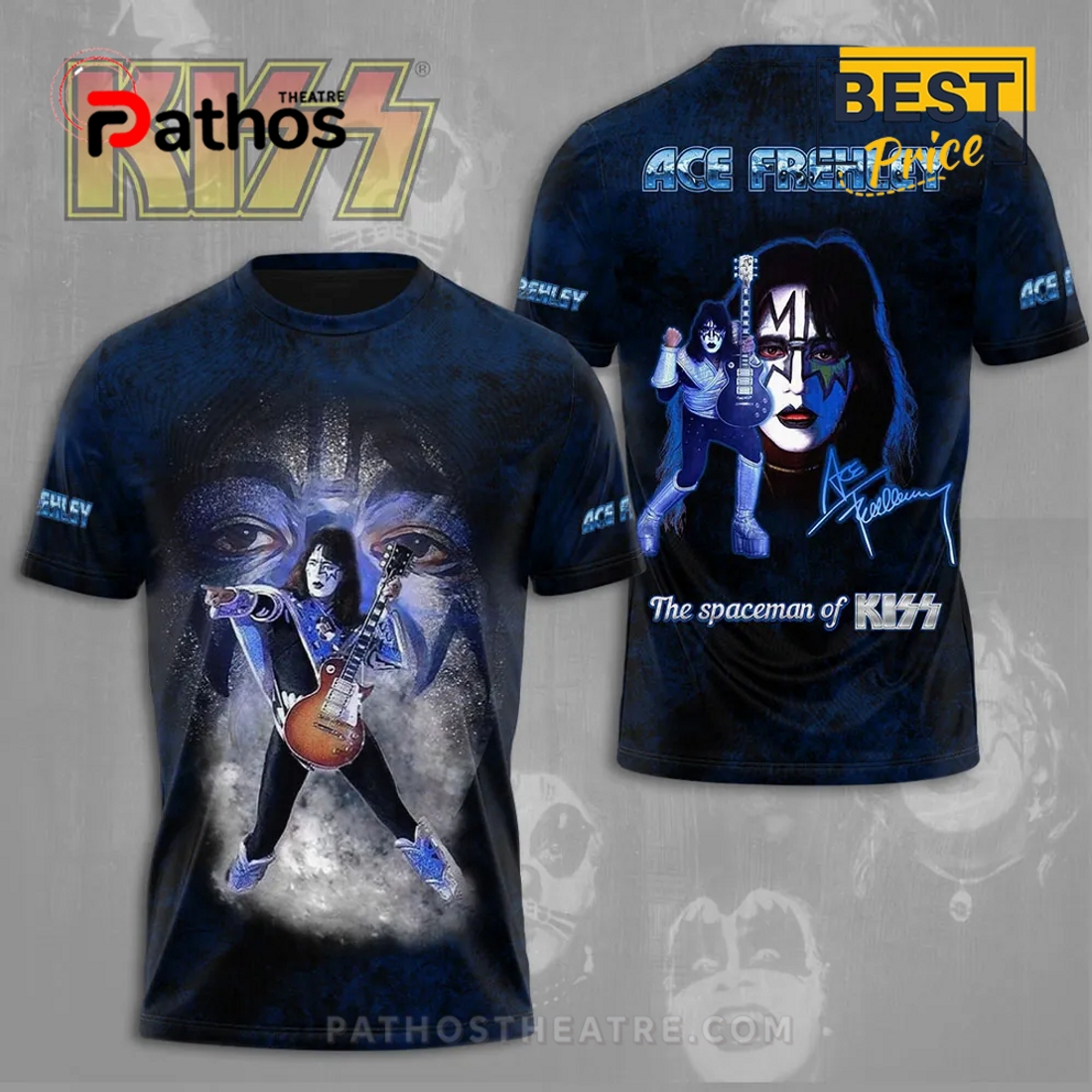 The Ace Frehley The Spaceman Of Kiss Hoodie 2025 stands as an essential garment for any dedicated fan of classic rock, offering a profound blend of iconic style, premium comfort, and lasting quality. This hoodie isn’t just an article of clothing; it’s a wearable testament to the legendary “Spaceman” persona of Ace Frehley, designed to resonate deeply with enthusiasts who appreciate the foundational aesthetics and blistering guitar solos that defined an era. At its core, the design showcases Ace Frehley in his unmistakable “Spaceman” makeup and costume, rendered with exceptional detail and vibrant colors that pop against the hoodie’s deep, often black, background. The graphic captures the essence of his stage presence, often featuring dynamic imagery that could include his signature smoking guitar or an explosion of galactic energy, all while prominently displaying the legendary KISS logo and the unique “2025” designation. This specific year marker suggests a special, forward-looking edition, hinting at its potential as a collector’s item or a commemorative piece tied to a future anniversary, adding an intriguing layer of exclusivity and significance for the discerning fan.