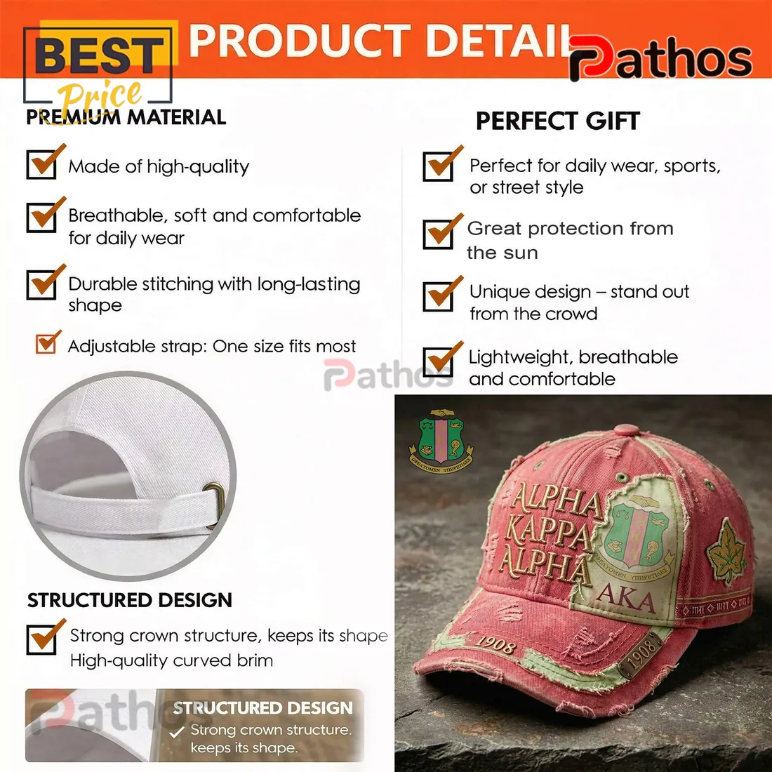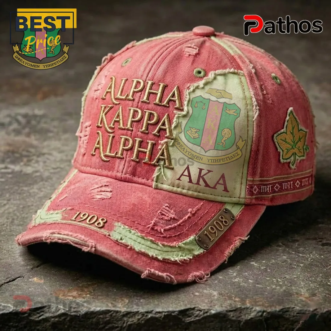 AKA Sorority 1908 Distressed Pink & Green Baseball Cap