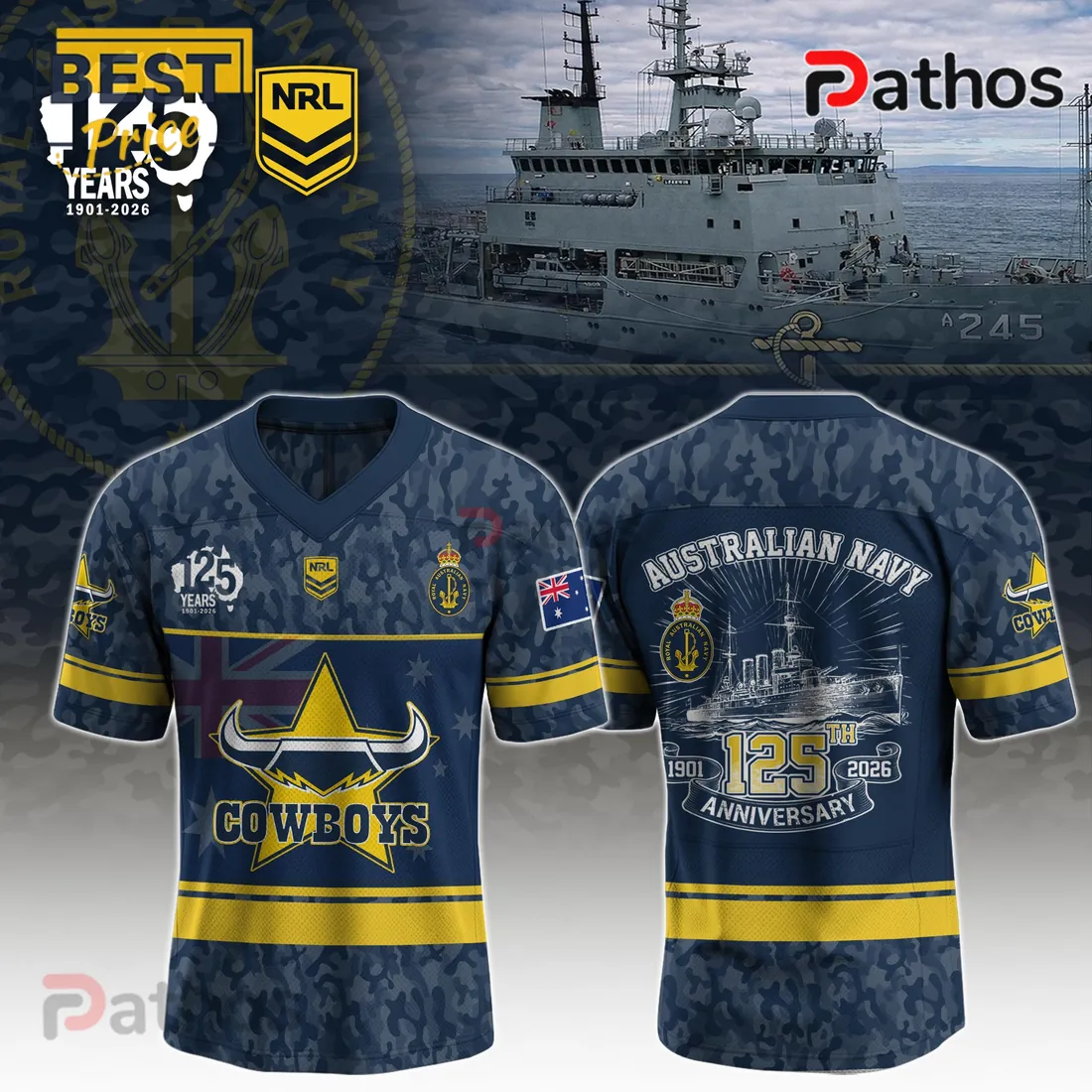 Australian Navy 125th Anniversary Cowboys NRL Camo Commemorative Jersey