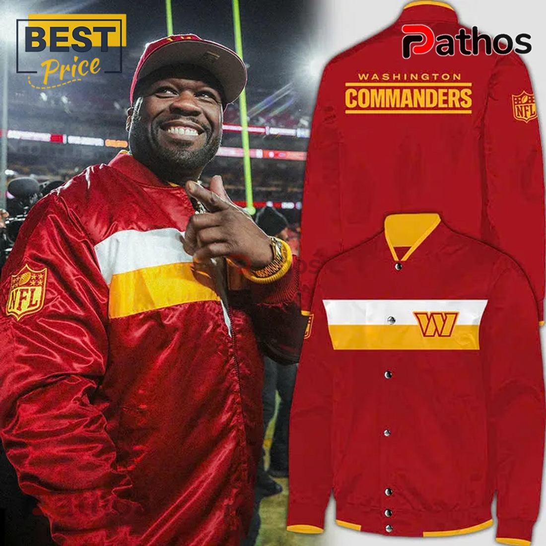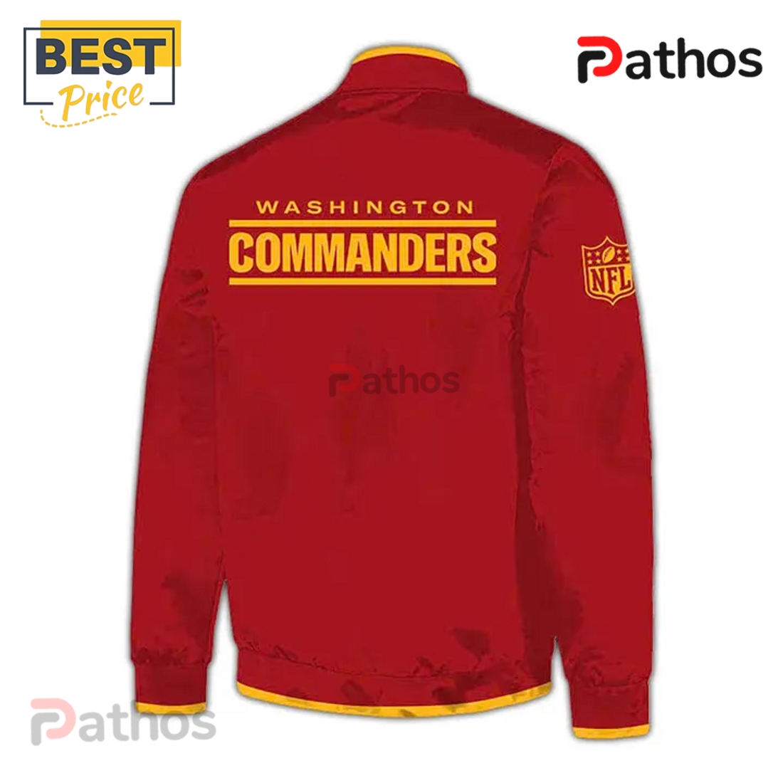 Attention to detail is evident in every stitch and component. The jacket features a classic snap-button front closure, with each button designed for smooth operation and adding another element of vintage authenticity. Further enhancing its traditional appeal are the striped rib-knit collar, cuffs, and waistband, which not only provide a snug, comfortable fit that seals in warmth but also add distinctive visual flair. These ribbed sections typically feature contrasting stripes, echoing the team’s colors and reinforcing the jacket’s sporty heritage. The iconic Washington Commanders emblem is meticulously applied, often as a high-quality embroidered patch on the left chest, showcasing the team’s new identity with pride and precision. Depending on the design, a larger, equally detailed logo or wordmark might adorn the back, ensuring that your team loyalty is visible from every angle. These logos are crafted to withstand wear and washing, maintaining their vibrant colors and sharp outlines over time.
