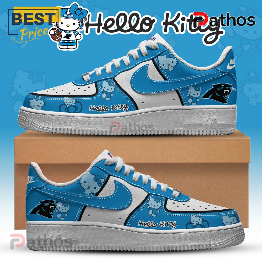 This unique collaborative design expertly caters to a broad spectrum of potential buyers. For the devoted Carolina Panthers fan, it offers an unprecedented and fashion-forward avenue to express team loyalty, moving beyond traditional jerseys and caps into the realm of high-fashion streetwear. It’s a statement piece that proudly displays their passion in a way that is both stylish and undeniably unique. Hello Kitty enthusiasts, on the other hand, will find a fresh and edgy interpretation of their cherished character, allowing them to integrate her playful spirit into a sophisticated, athletic context. Sneaker collectors and enthusiasts are particularly drawn to its exclusivity and novelty; collaborations of this caliber are rare, often limited in production, and represent a valuable addition to any discerning collection, promising future collectibility. Beyond specific fandoms, individuals simply seeking distinctive, head-turning footwear will find this Air Force 1 to be a perfect choice. It’s a guaranteed conversation starter, blending athletic heritage with pop culture whimsy in a way that commands attention. The comfort and durability inherited from the classic Air Force 1 ensure that this isn’t just a display piece, but a wearable work of art that can be confidently integrated into everyday style, allowing users to showcase their multifaceted personality and discerning taste with every stride.