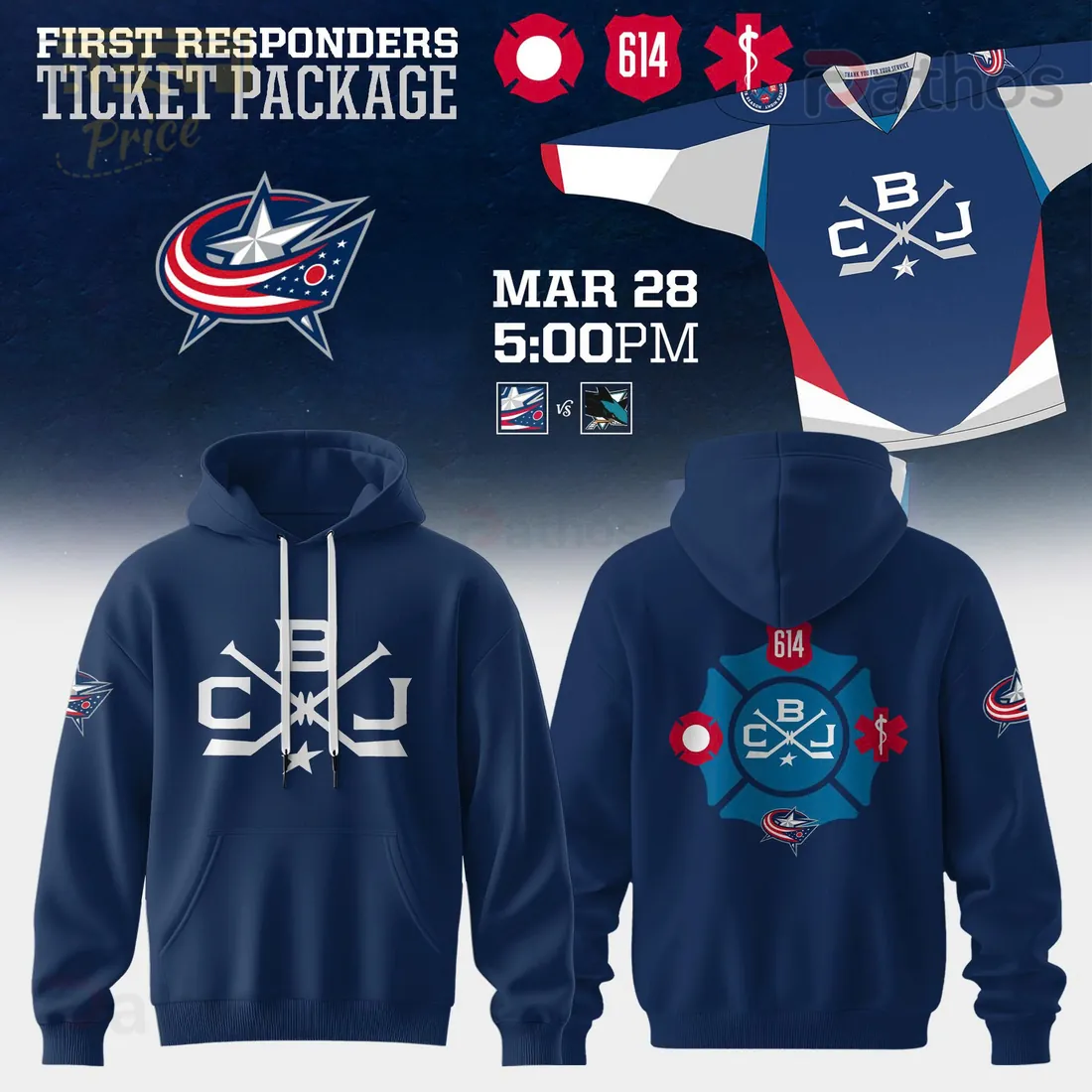 Columbus Blue Jackets First Responders Hockey Tribute Pullover Hoodie