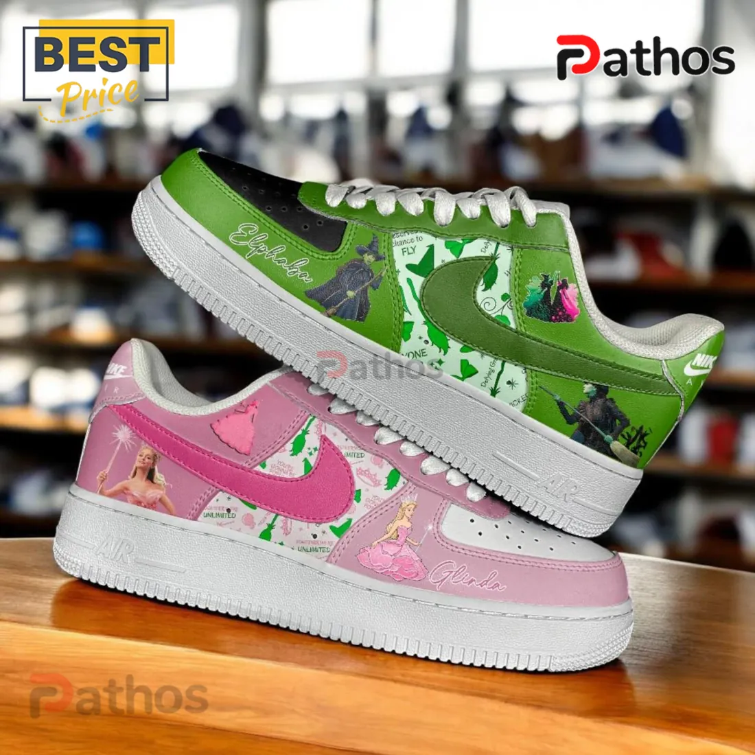 Custom Wicked Elphaba & Glinda Hand-Painted Air Force 1