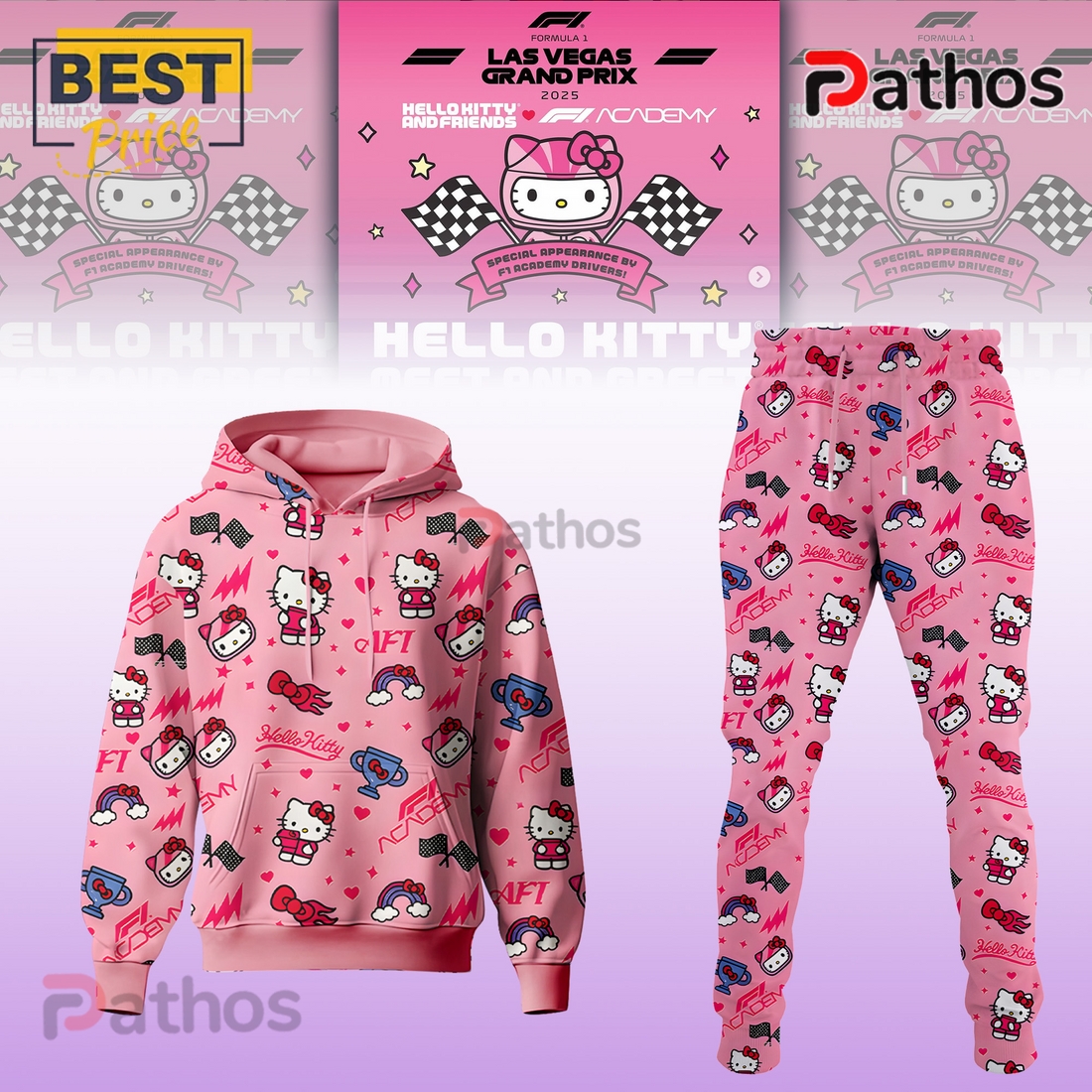 F1 Academy x Hello Kitty Racing Tee Pink Hoodie And Pants