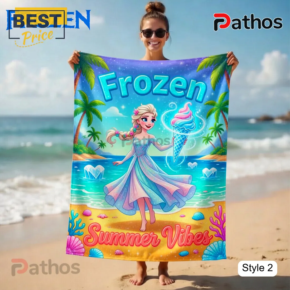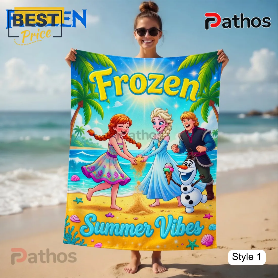Frozen Summer Vibes Elsa Anna Olaf Characters Beach Towel