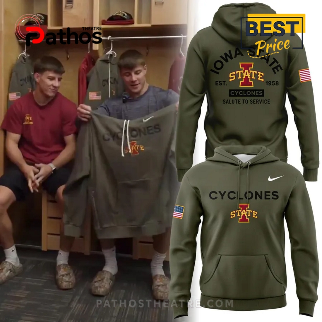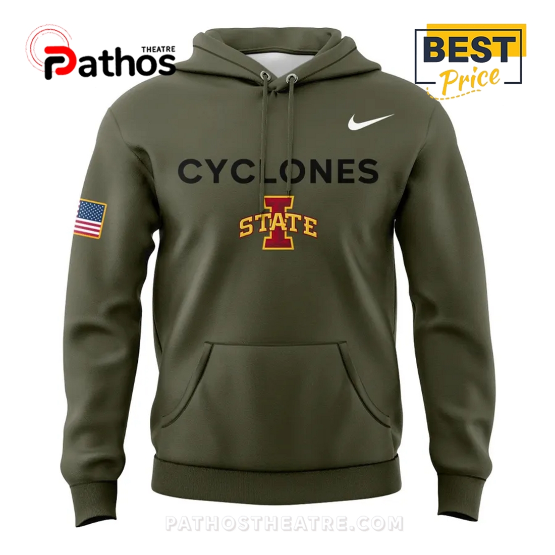 At its core, the hoodie features a commanding graphic display that centers on the iconic Iowa State Cyclones wrestling logo, reimagined with a patriotic flourish specifically for Veterans Day 2025. The classic cardinal and gold hues are strategically integrated with a muted, yet impactful, palette of military greens, desert sands, and deep navies, providing a sophisticated backdrop for the design. A stylized American flag motif, subtly integrated into the background of the Cyclone logo, offers a tasteful nod to national pride without overshadowing the team’s identity. Above this powerful emblem, “Iowa State Wrestling” is emblazoned in a bold, authoritative font, while below, “Veterans Day 2025” serves as a poignant reminder of the occasion. Further enhancing its exclusivity, a small, discreet patch on the sleeve or hem indicates its “Limited Edition” status, perhaps even featuring a unique serial number, appealing directly to collectors and those who cherish rare merchandise. This design ensures that wearers make a clear statement of allegiance and respect, standing out in any crowd while embodying the values of strength and service.