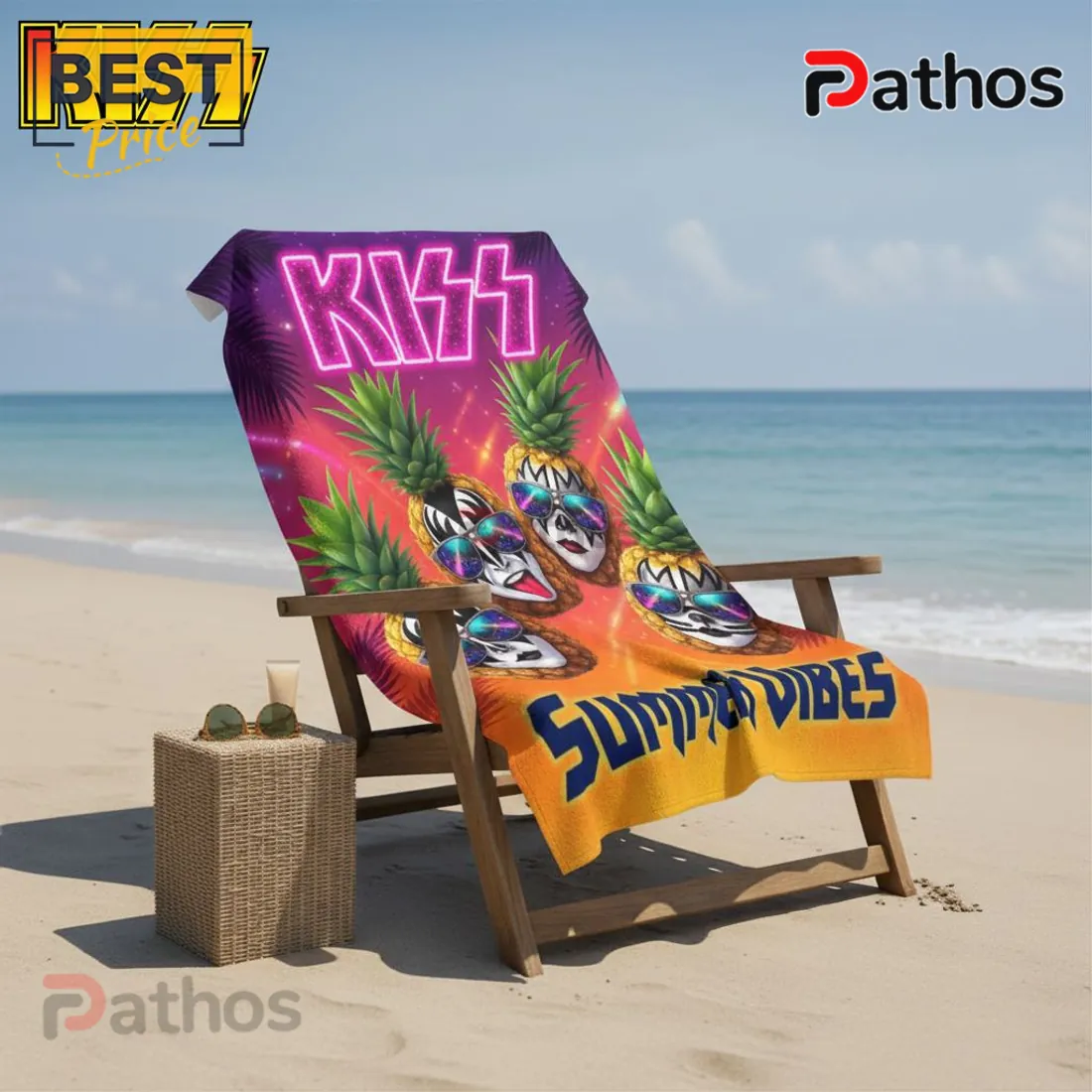 KISS Summer Vibes Pineapple Rock Band Beach Towel