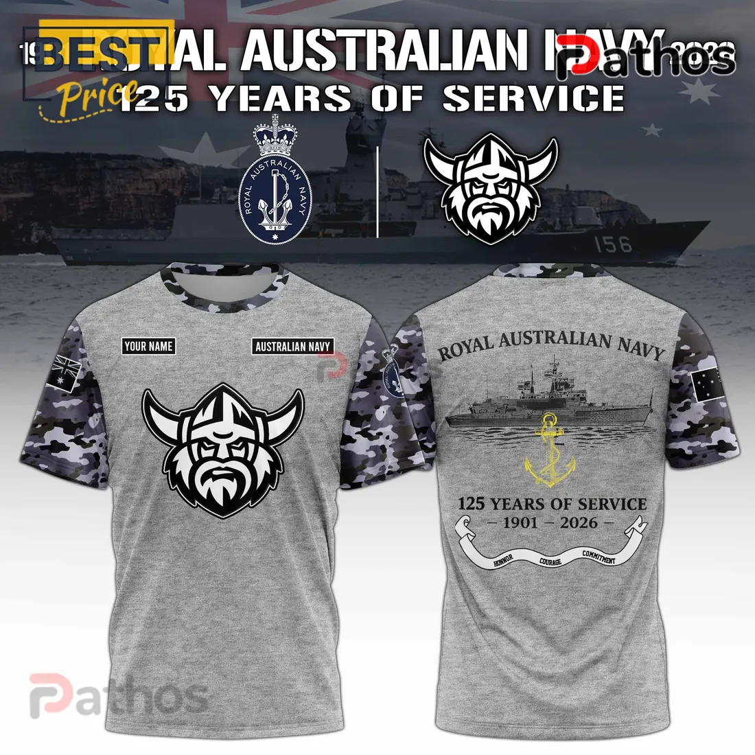 - Striking Details: The bold Raiders Viking logo paired with the distinguished Royal Australian Navy crest and 125th Anniversary details creates an unforgettable visual. Unique camo sleeves add an extra layer of eye-catching design.