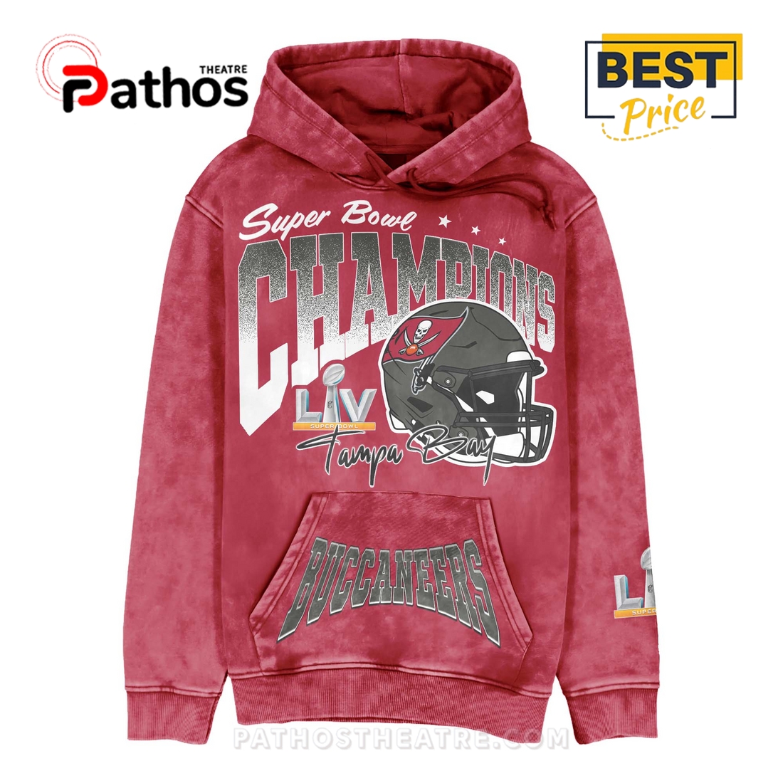 The design is a meticulous celebration of the Buccaneers’ Super Bowl LV triumph, featuring official NFL and Super Bowl branding that confirms its authenticity and collectible value. The iconic Super Bowl LV logo, often a bold and distinct graphic, is prominently displayed, frequently rendered with a high-quality screen print or detailed embroidery that resists cracking or fading. This central graphic is seamlessly integrated with the Tampa Bay Buccaneers’ official team logo, showcasing the team’s emblematic skull and flag alongside championship details like the specific year (2020 season, concluding in early 2021) and the host city, Tampa. The color palette typically adheres to the Buccaneers’ classic scheme of rich red, deep pewter, and crisp white, ensuring that the hoodie is instantly recognizable and resonates deeply with team identity. The overall aesthetic is one of proud declaration, allowing fans to visibly represent their team’s historic achievement.