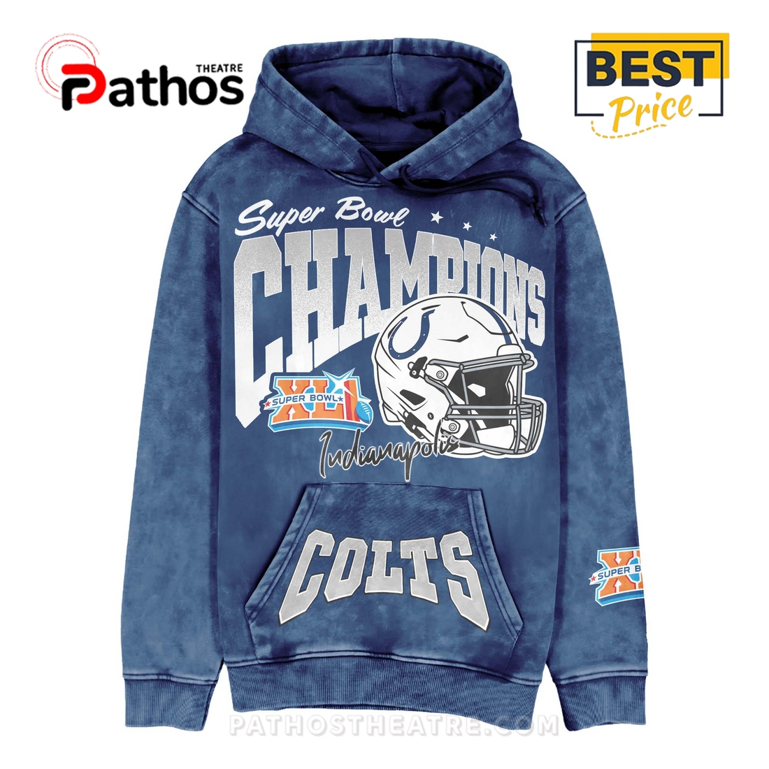 What truly elevates this hoodie beyond standard fan gear is its specific commemorative design, celebrating the Indianapolis Colts’ victorious 2006 season that culminated in their Super Bowl XLI championship. Prominently displayed will be the iconic Indianapolis Colts logo, likely a bold and unmistakable rendition of the team’s horseshoe emblem, rendered through high-quality screen printing or intricate embroidery that resists cracking or fading. Crucially, the hoodie features the official Super Bowl XLI logo, perhaps alongside the year “2006,” commemorating that unforgettable championship run. This specific graphic work serves as a powerful visual reminder of Peyton Manning’s leadership, the team’s tenacious defense, and the sheer exhilaration of their Super Bowl victory. For the die-hard Colts fan, wearing this hoodie isn’t just about supporting the team; it’s about reliving the glory, invoking the memories of that iconic season, the nail-biting playoffs, and the ultimate triumph on the biggest stage in football. It satisfies a deep-seated need for nostalgia and pride, allowing wearers to literally wrap themselves in the legacy of their team’s greatest achievement. Beyond its emotional resonance, this hoodie is an incredibly versatile addition to any wardrobe. It seamlessly transitions from a casual statement piece for sporting events to comfortable loungewear, or even as a practical layer for outdoor activities. It meets the needs of customers looking for a durable, high-quality garment that not only performs well in terms of comfort and warmth but also carries significant sentimental and historical value. For those seeking a meaningful gift for a devoted Colts enthusiast, this hoodie stands out as an exceptional choice, offering a tangible link to a celebrated era and a constant reminder of the team’s championship success, making it more than just clothing—it’s a wearable piece of Colts history.