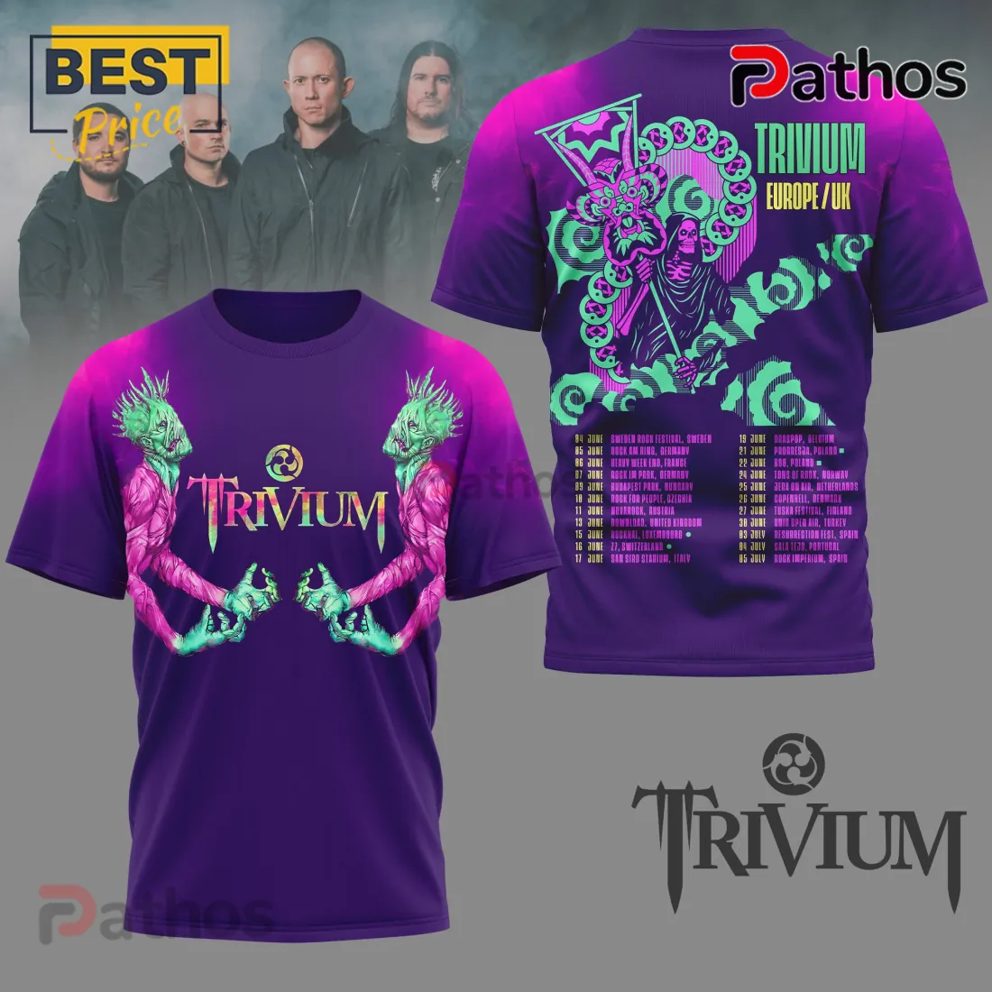 This Trivium Europe Tour 3D Graphic Purple T-Shirt isn’t just merch; it’s your ultimate statement piece. Get ready for heads to turn and fellow fans to give knowing nods of respect. You’ll instantly spark conversations about epic shows and shared metal moments.