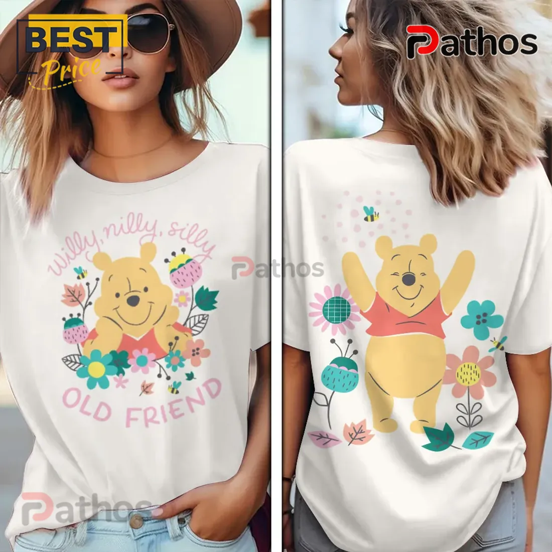- Striking Details: The cheerful Pooh graphic, surrounded by vibrant floral accents and playful “willy, nilly, silly old friend” text, instantly catches the eye. It’s a sweet, artistic design that stands out in any crowd.
